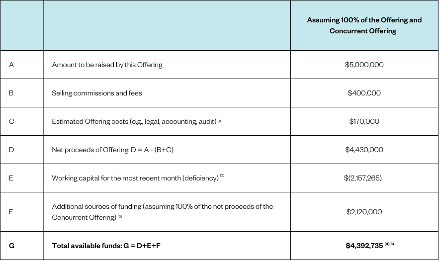 The expected total available funds to the Company following completion of the Offering and the Concurrent Offering is estimated to be approximately $4,392,735.